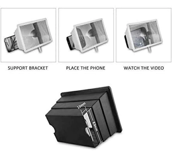 3D Screen Magnifier Box & Screen Enlarged Expander Amplifier with Eyes Protection, Foldable Stand Screen Expander Support for All Smartphones