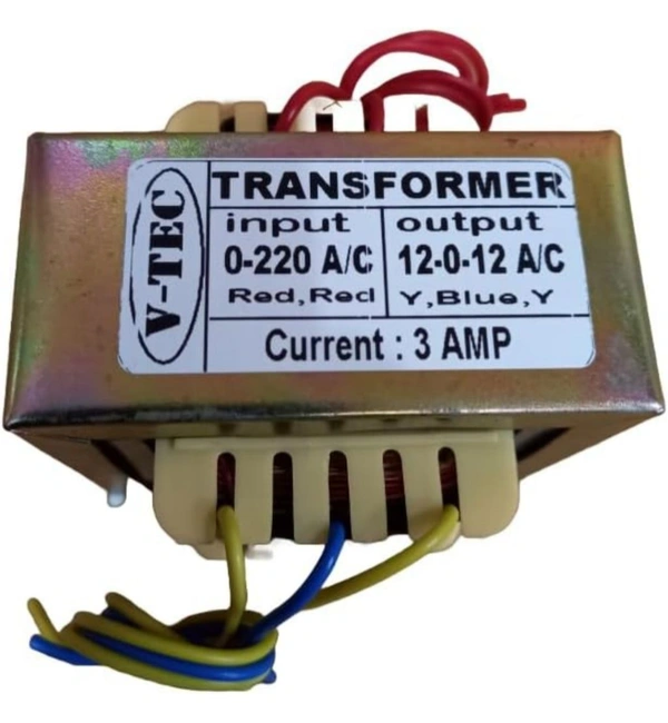 Looking for a high-quality power transformer to meet your specific electrical needs? The Accessories Roy 12-0-12 Volt 3Amp Power Transformer is here to deliver exceptional performance with unmatched reliability. Designed for input voltage of 220V AC, this step-down transformer is perfect for converting power into a safe and usable 12-0-12 volt output, with a current rating of 3000mA (3Amp). Built for vertical mounting, it’s compact, efficient, and versatile for various applications.