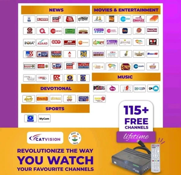 Catvision DD FreeDish HD Set Top Box | Watch 115+ TV Channels Lifetime Free | Free to Air Set Top Box | HDMI Cable + Deluxe Remote