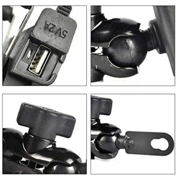 Our Motorcycle Phone Holder with USB Charger is the ultimate companion for your biking adventures. Securely mount your smartphone in any desired position with the 360-degree rotation feature, while simultaneously keeping it fully charged with our fast-charging USB port.