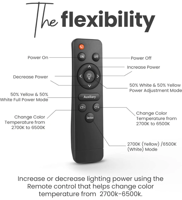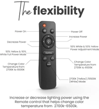 𝗘𝗳𝗳𝗼𝗿𝘁𝗹𝗲𝘀𝘀 𝗖𝗼𝗻𝘁𝗿𝗼𝗹: Take command of your lighting setup with the included Remote Control, allowing seamless adjustments to color temperature (2700K-6500K) and brightness levels (0-100%) with just a click.