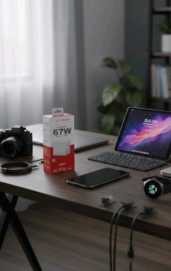 Power up your devices like never before with the VOYX CH-67, a cutting-edge 67W super fast charger designed to meet the demands of modern lifestyles. From smartphones to tablets and even compatible laptops, this "All-In-One" power adapter ensures your devices stay charged efficiently and safely, whether you're at home, the office, or on the go.